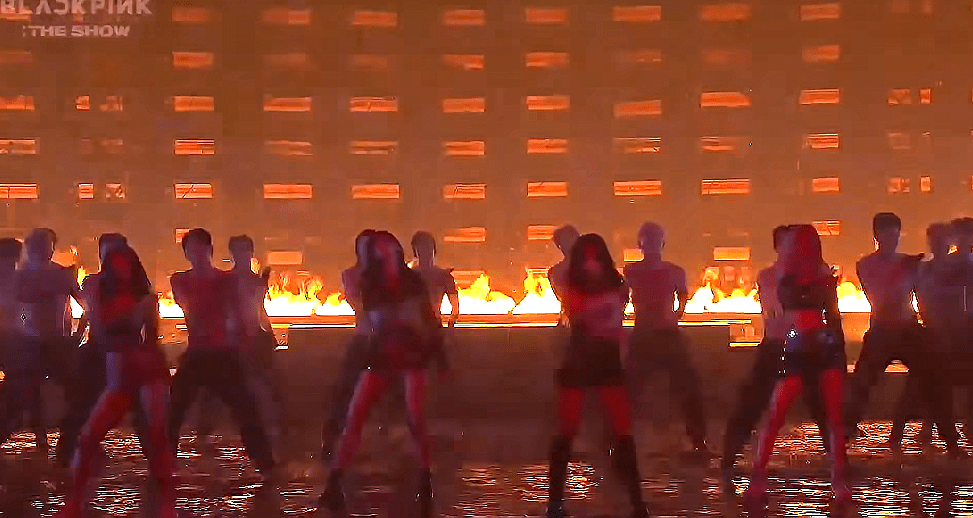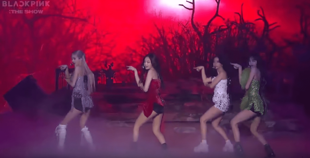 How You Like That: Like with all the songs, the girls sing live when they can. This song is so different with the accompaniment of a live band. It works well for a concert performance, imo. The back drop is still post-apocalyptic red with burned out trees and branches. While the stage design is unique and well done, it’s the wrong vibe for this song. Kind of killed the mood. This is just my opinion. Don’t flame me, Blinks!