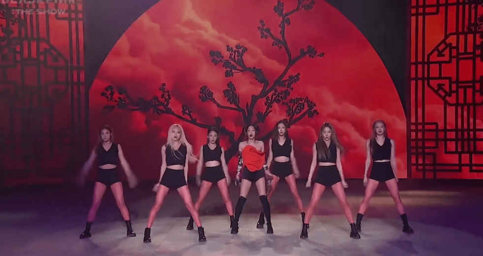 DDU-DU DDU-DU: Whoa. This one gets crazy. They are with a bunch of male dancers and there is a fiery back drop behind them. The set lights change colors from reds to blues and so on. Also, the color is super saturated as it has been throughout the show.