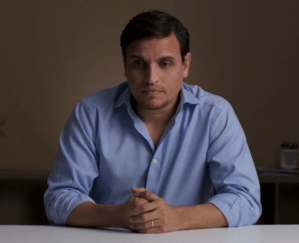 Eduardo is seated at a table giving an interview to the filmmakers. He tells us Mark told him about DOS and the branding. Mark then asked him to join the mission to take down Nxivm. After talking with Sarah and expressing sympathy for what happened to her, Eduardo chose to go to Albany and investigate the situation on his own, first. What he found was a sorority of women—women who were his friends, who he had great respect for and trusted—that told him they were a part of a good thing.