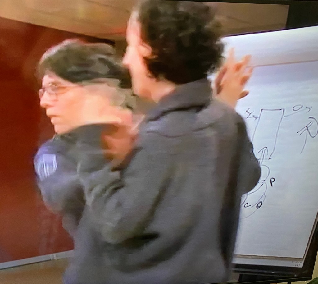 We then cut to a video clip of Keith giving a lecture. “The body can do so much more than the mind alone,” he says nonsensically. He says there is an ESP drill to demonstrate this and calls Lauren up to assist. But then he has to tell Lauren what he wants her to do, because this “drill” is something he probably just made up. He has her press her hands against his and mirror his movements. Naturally, she’s not able to, because she’s not a fucking mind reader. He tells her she’s “thinking too much.” Right.