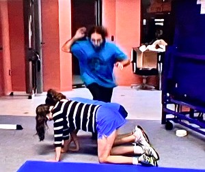 We see a clip where Keith complains nobody catches “my humanity and my humor.” Dani says she has footage of him playing tennis and volleyball. “But you don’t have me jumping over someone,” he says. We cut to Keith jumping over a couple of his minions. A great demonstration of his “humor.” What a goofy charmer he is! Barf.