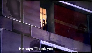 The dance party is on at club MDC. We see various cuts of dancing from different nights. I could swear at one point it looks like they hired a DJ. The dancing takes on a religious fervor with everyone’s eyes looking upward to Keith’s window.