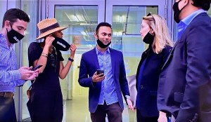 The gang of loyalists arrive at lead prosecutor Moira Penza’s office building in NYC. They are wearing masks that say “silenced” on the front. If only! The irony! Guys, you have a literal film crew following you around. Who is silencing you?