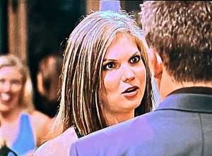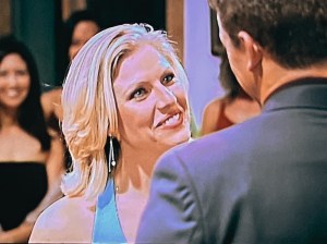 Bachelorette Gwen introduces herself to Aaron. We cut to her interview clip where we learn she is 31 years old. She’s given up on single’s bars, she tells us. She’s sick of the whole scene. She decided to do reality shows instead. I read online this wasn’t her first show (nor would it be her last.)