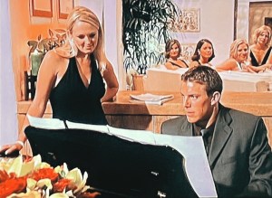 Cari 29, blonde is standing next to Aaron at the piano. She has been putting in the work to get him to notice her. We’ll see if it pays off.